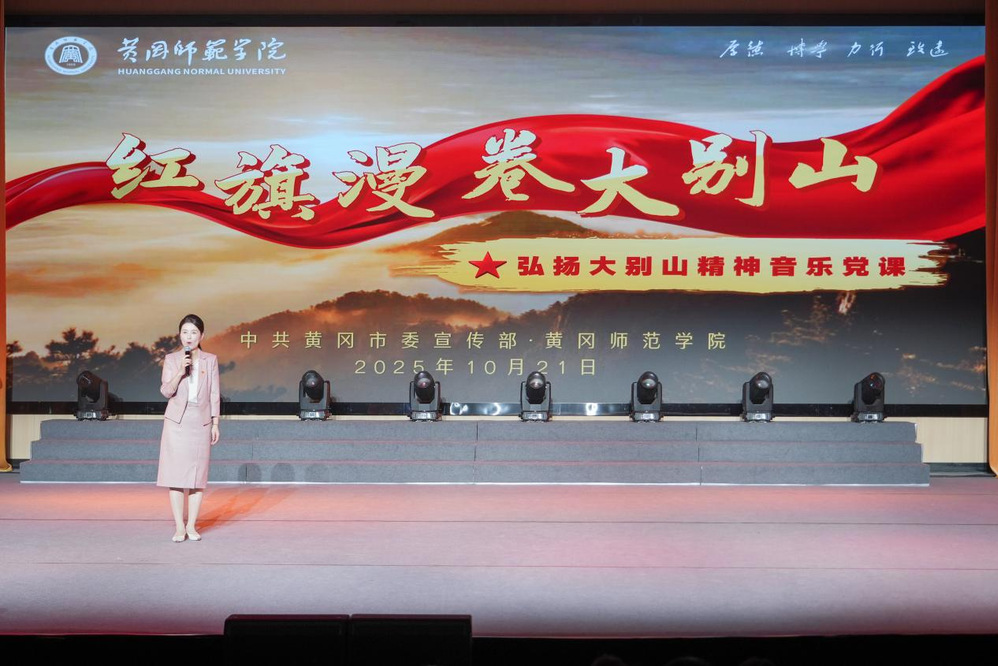 10月21日,黄冈市“弘扬大别山精神”音乐党课在黄冈师范学院音乐厅成功举行。活动由中共黄冈市委宣传部指导,黄冈师范学院主办,我研究会和马克思主义学院、音乐学院承办,我研究会副秘书长、马克思主义学院院长夏慧教授主讲。中共黄冈市委常委、宣传部长李初敏,校党委书记陈向军,党委常委、副校长宋文生,党委常委、马克思主义学院党委书记余晚霞出席活动,300余名师生到场参加。