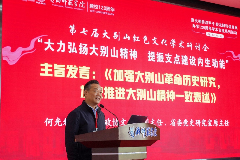 2025年11月15日至16日,由湖北省社会科学界联合会指导,湖北省大别山精神研究会(湖北省社科普及基地)与黄冈师范学院联合主办,黄冈师范学院马克思主义学院承办,大别山红色文化研究中心、黄冈市社会科学界联合会协办的第七届大别山红色文化学术研讨会,以“大力弘扬大别山精神 提振支点建设内生动能”为主题在黄冈师范学院顺利召开。来自北京、西藏、新疆、河南、江苏、浙江、湖北等多地高校、科研院所、党史研究机构及地方红色文化研究团体的200余名代表齐聚一堂,共探大别山精神的时代价值与传承路径。