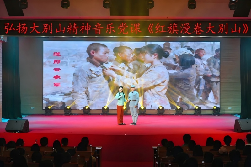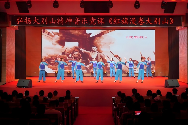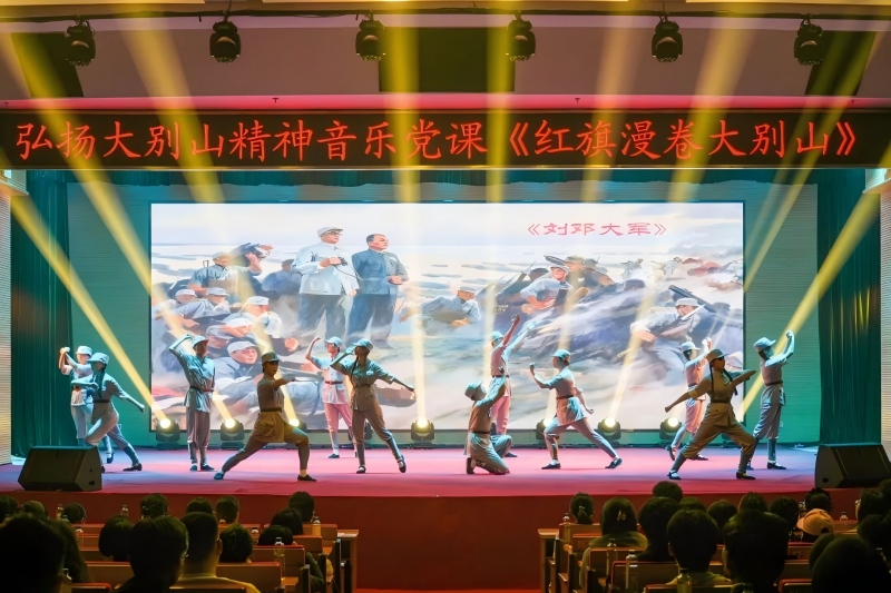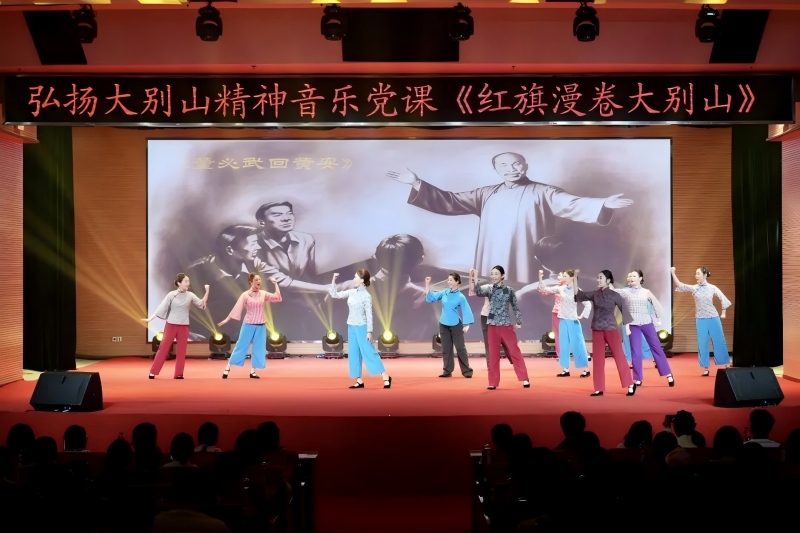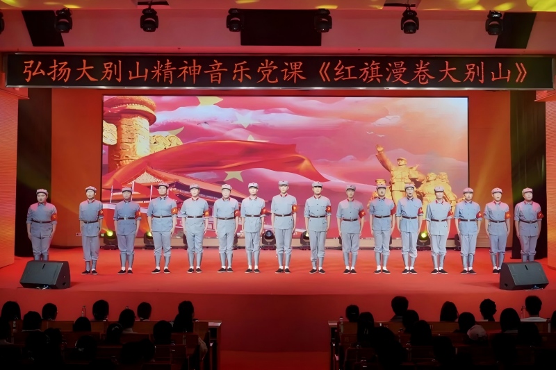 音乐党课以“红旗漫卷大别山”为主题,共分“先驱播火,唤起工农跟党走”“不胜不休,苏区红军勇战斗”“孤悬敌后,抗日劲旅歼倭寇”“勇当前锋,千里跃进利剑飕”四个篇章,以音乐为纽带、党史为根基,串联起1921年至1949年大别山地区波澜壮阔的新民主主义革命历程。党课精选《董必武回黄安》《八月桂花遍地开》《三大纪律八项注意》等九首传唱不衰的红色经典歌曲,融合理论讲解、歌舞表演、现场问答等多种形式,引导观众沉浸式回望大别山“二十八年红旗不倒”的革命壮举,在悠扬激昂的旋律中,深刻体悟大别山精神的丰富内涵与时代价值。