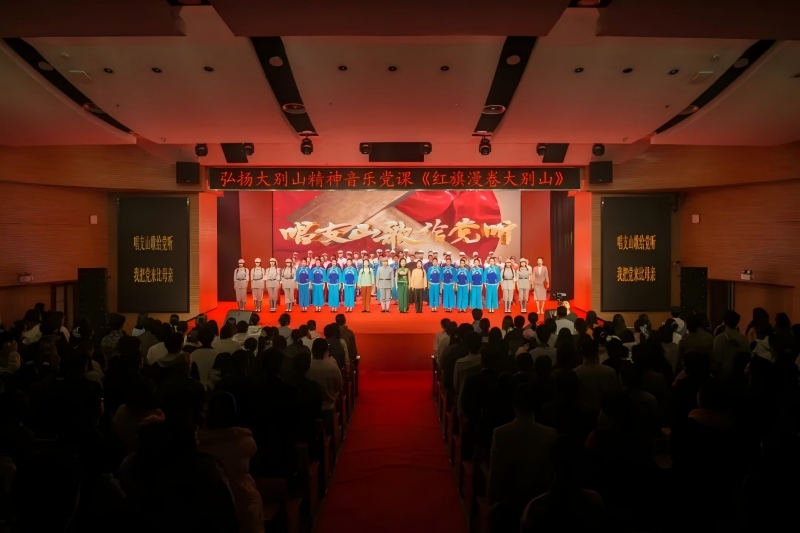演出起立,全体观众起立,齐声高唱《唱支山歌给党听》,激昂嘹亮的歌声回荡在人文馆内,也让大别山精神的种子深深扎根在青年学子心中,凝聚起奋进新时代的青春力量。
